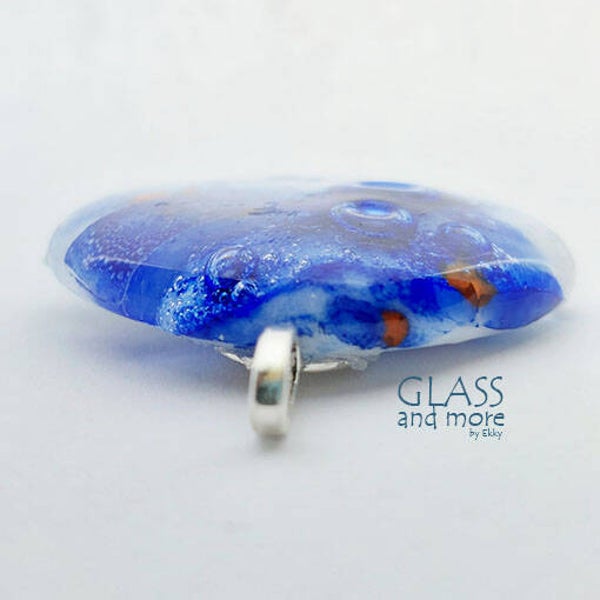 Afmetingen van de hanger zijn 39 bij 37 mm. De hangeroog is van RVS, inclusief een blauwe spang.