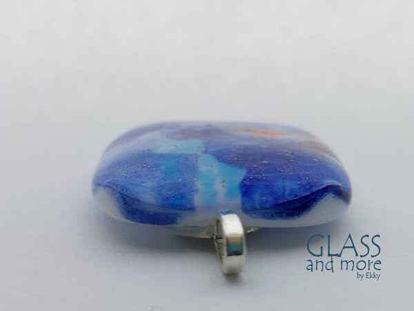 Afmetingen van de hanger zijn 33 bij 29 mm. De hangeroog is van RVS, inclusief een blauwe spang.