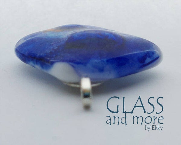 Afmetingen van de hanger zijn 39 bij 27 mm. De hangeroog is van RVS, inclusief een blauwe spang.