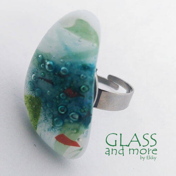 Er is gebruik gemaakt van glas, glasfrit, bubbel poeder en glasconfetti.