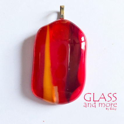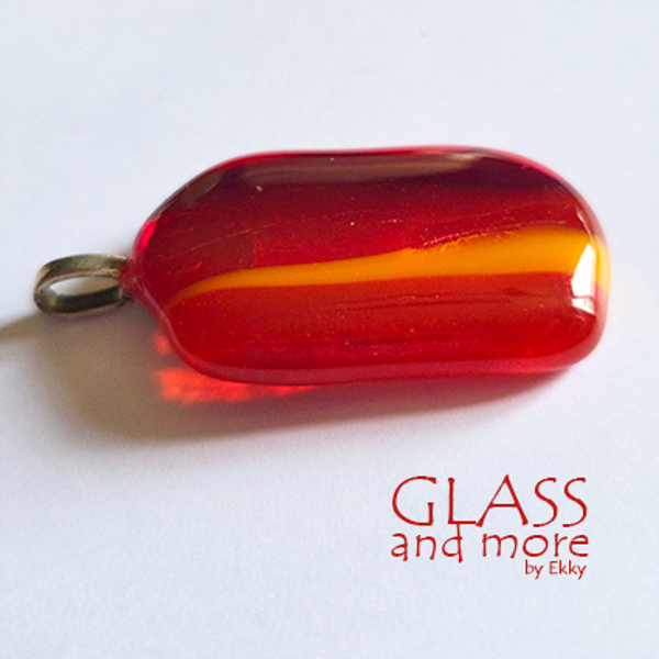 Een warm gekleurde glashanger in rode en oranje tinten. Elke tint vangt een ander stukje van het licht en laat je stralen. Gemaakt met opaal en transparant glas.