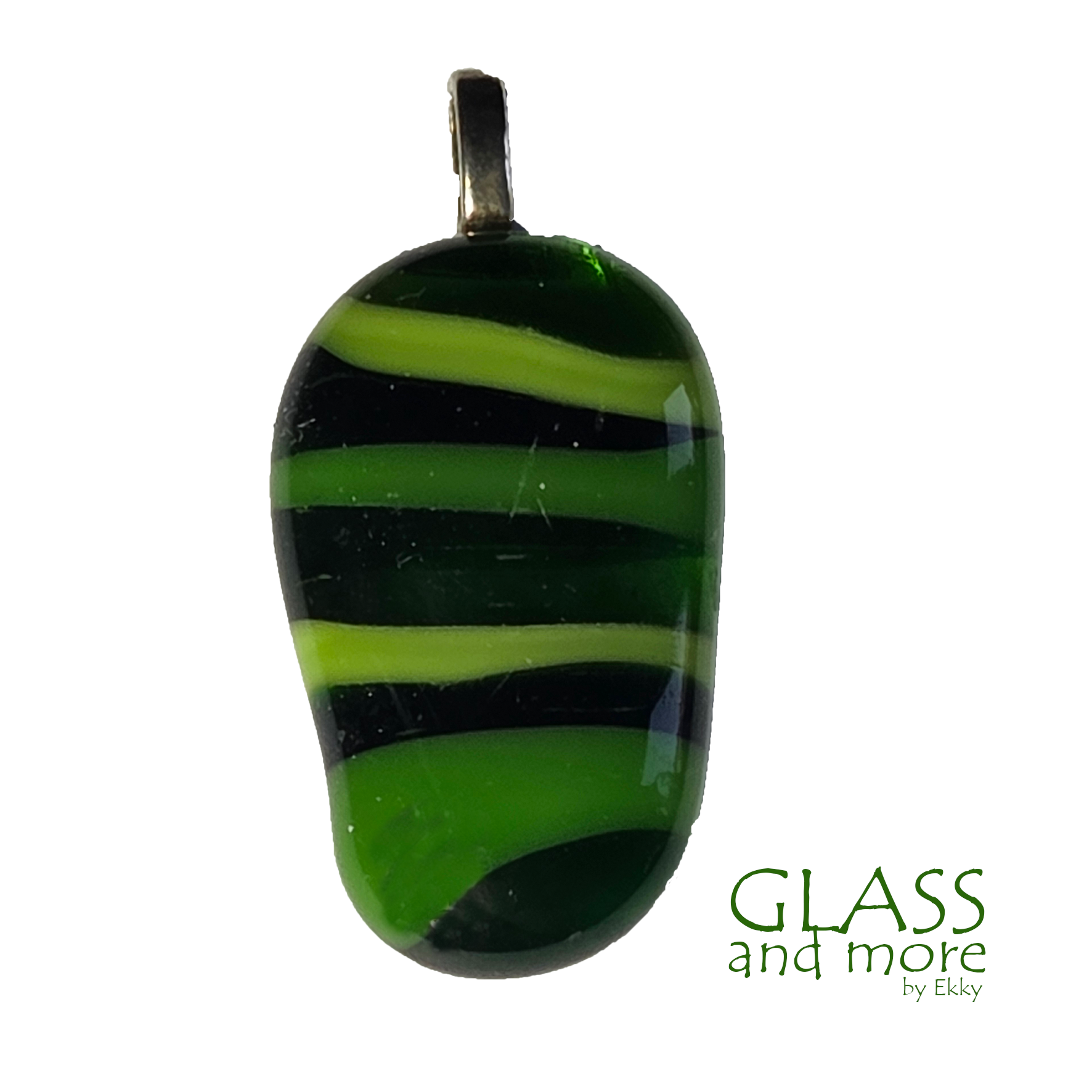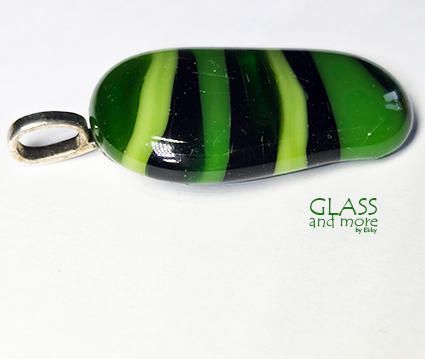 Een langwerpige glashanger met groen getinte streepjes.