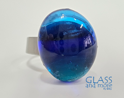 Handgemaakte glazen ring in betoverende blauwe tinten.De ringbasis is van verstelbaar, nikkelvrij roestvrij staal (RVS), zodat hij comfortabel past om elke vinger.