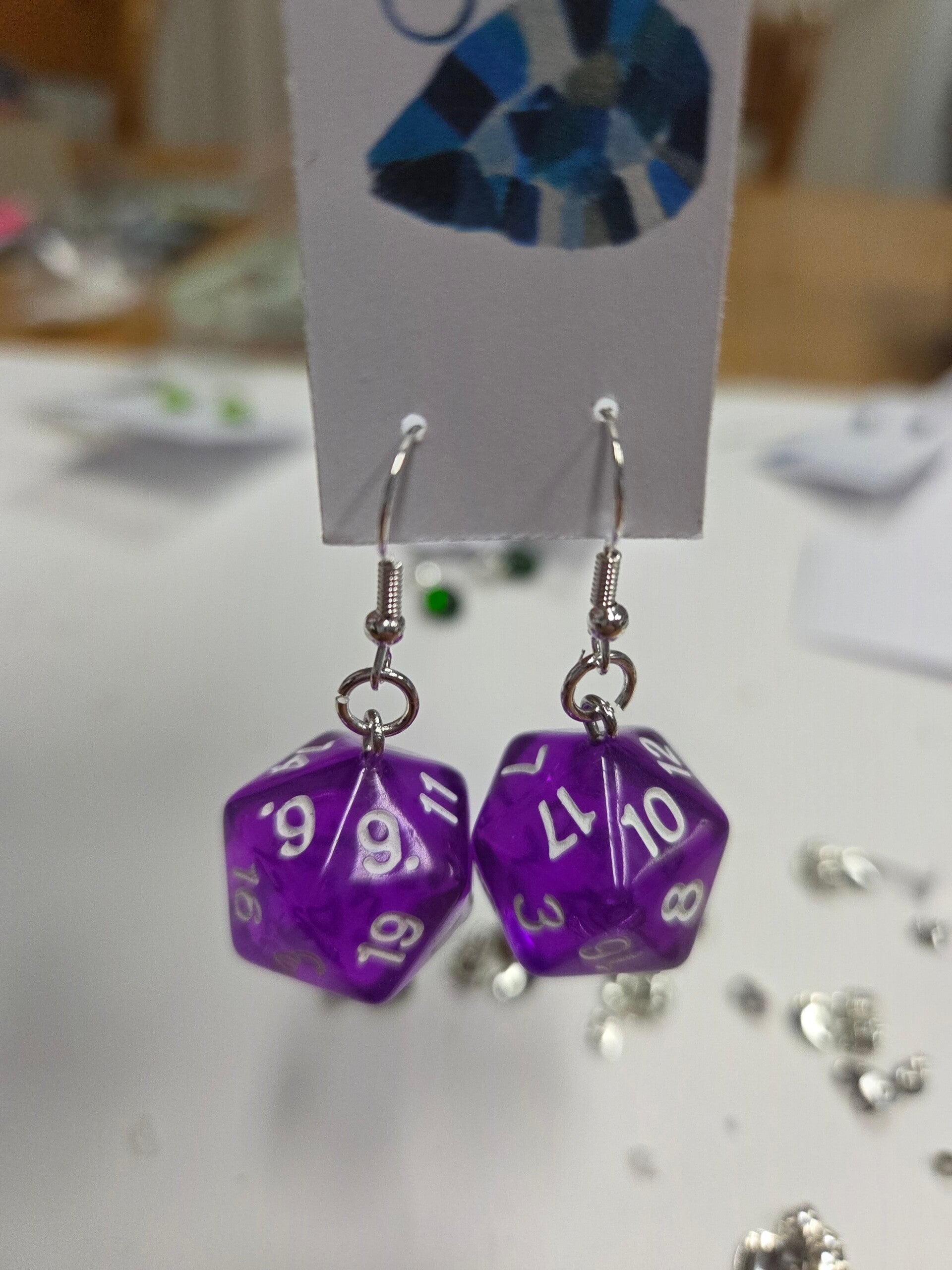 Leuke oorbellen, gemaakt van dobbelstenen gebruikt bij bijvoorbeeld Dungeons and Dragons.