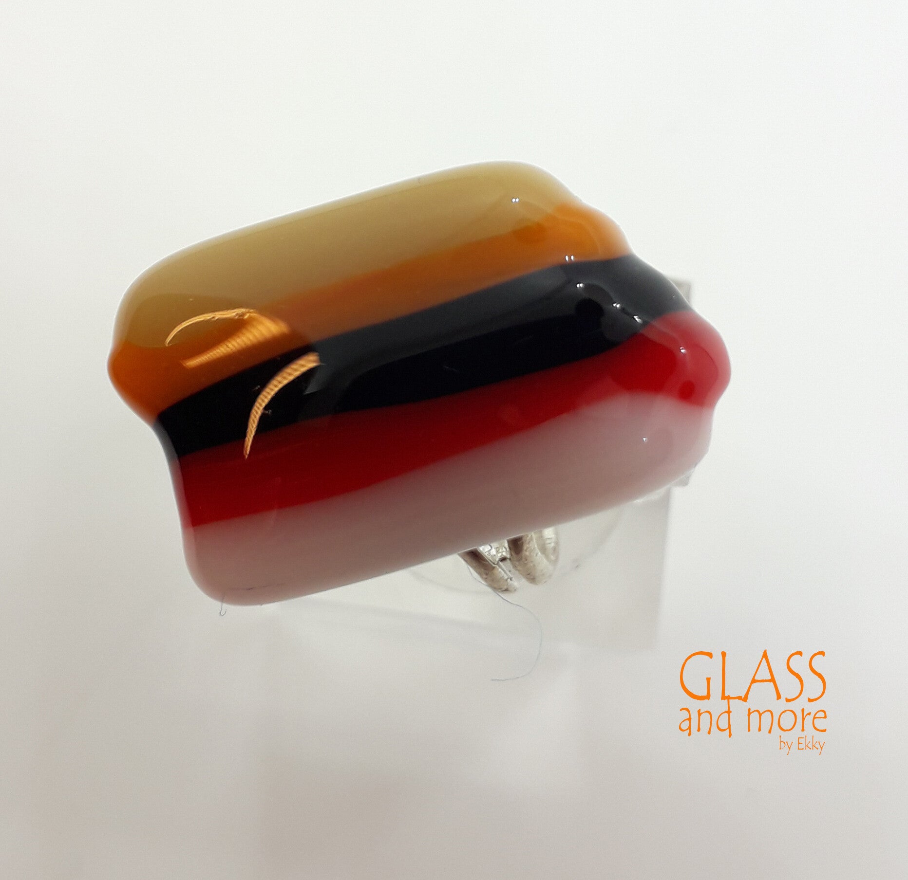 Glazen ring in warme kleuren.
