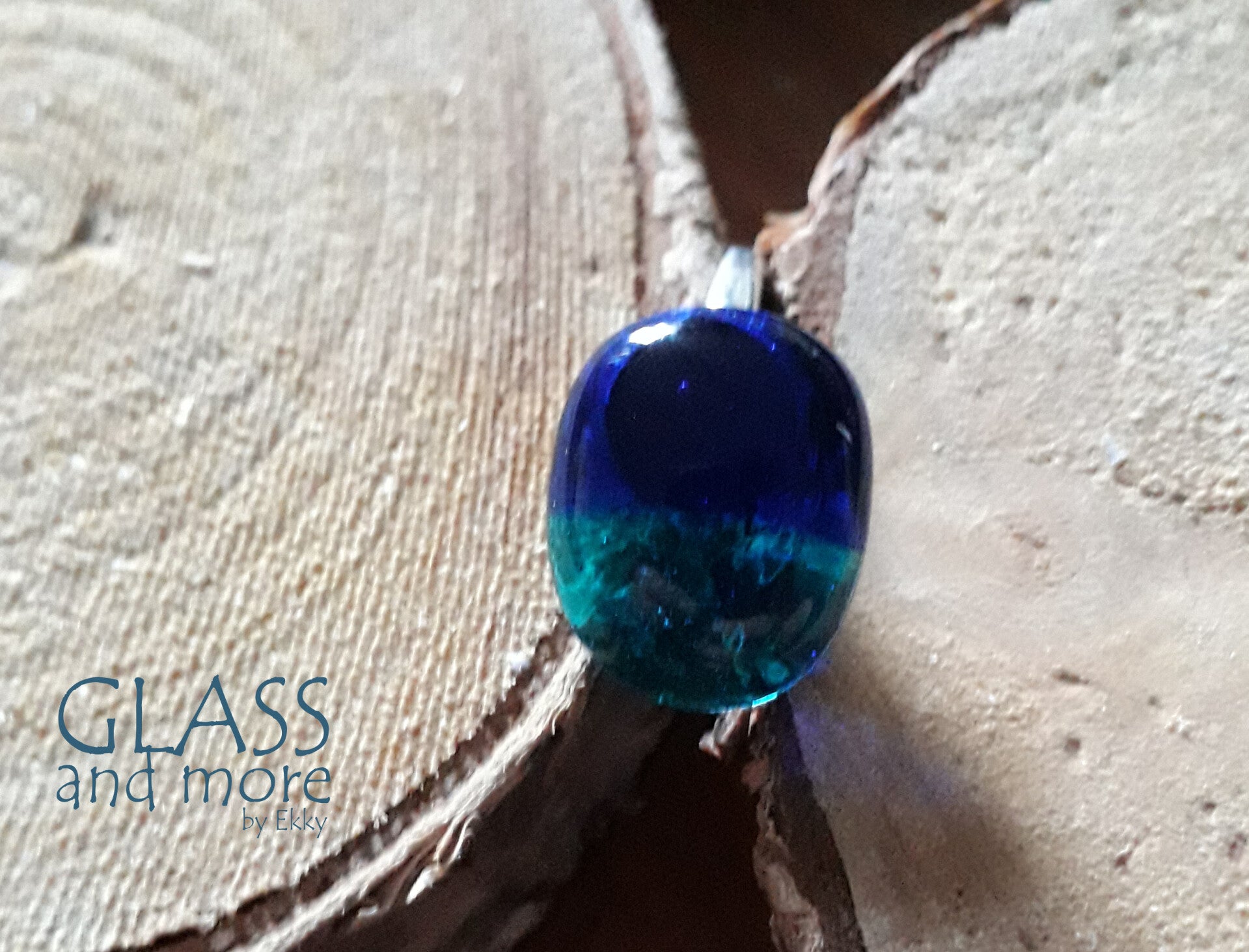 Glas in twee tinten blauw met zilveren ring.