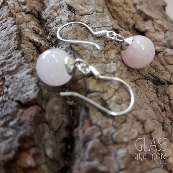 Roze kwarts 10 mm met zilveren eindkapje. rijggat ringetje 2.6 mm.