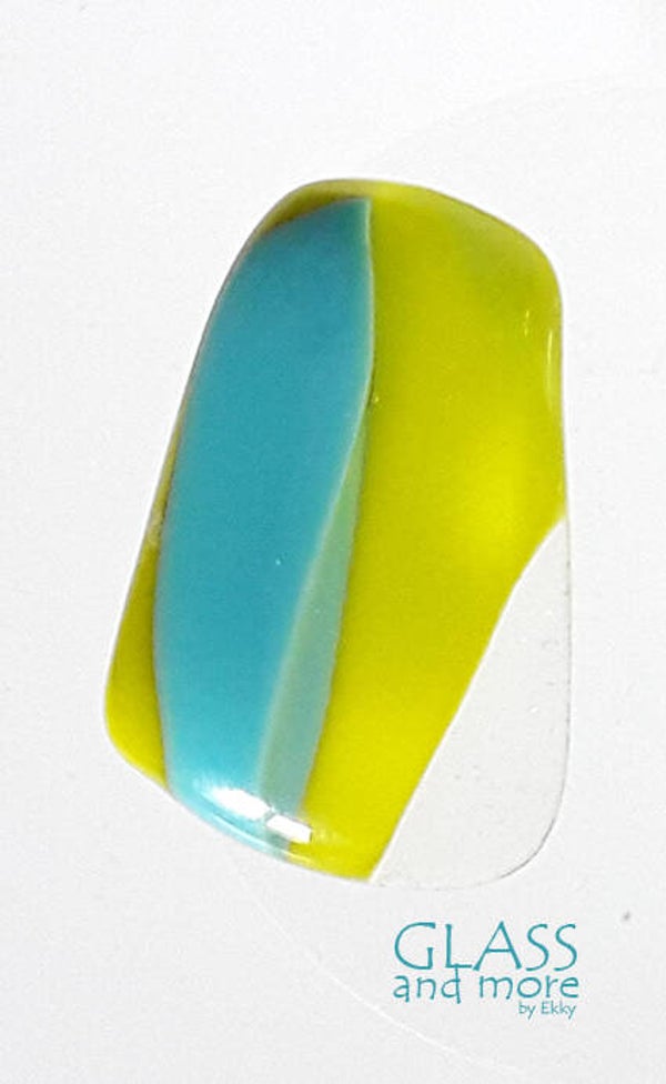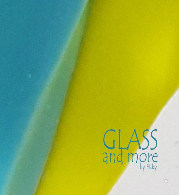 Rechthoekige glashanger in lichtblauw en lichtgroen met een stukje transparant glas.
