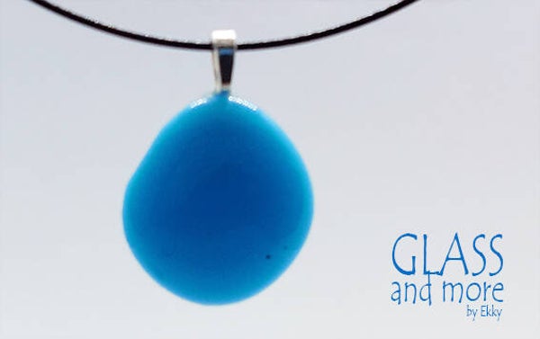 Leuke hanger, gemaakt van licht blauw glas.