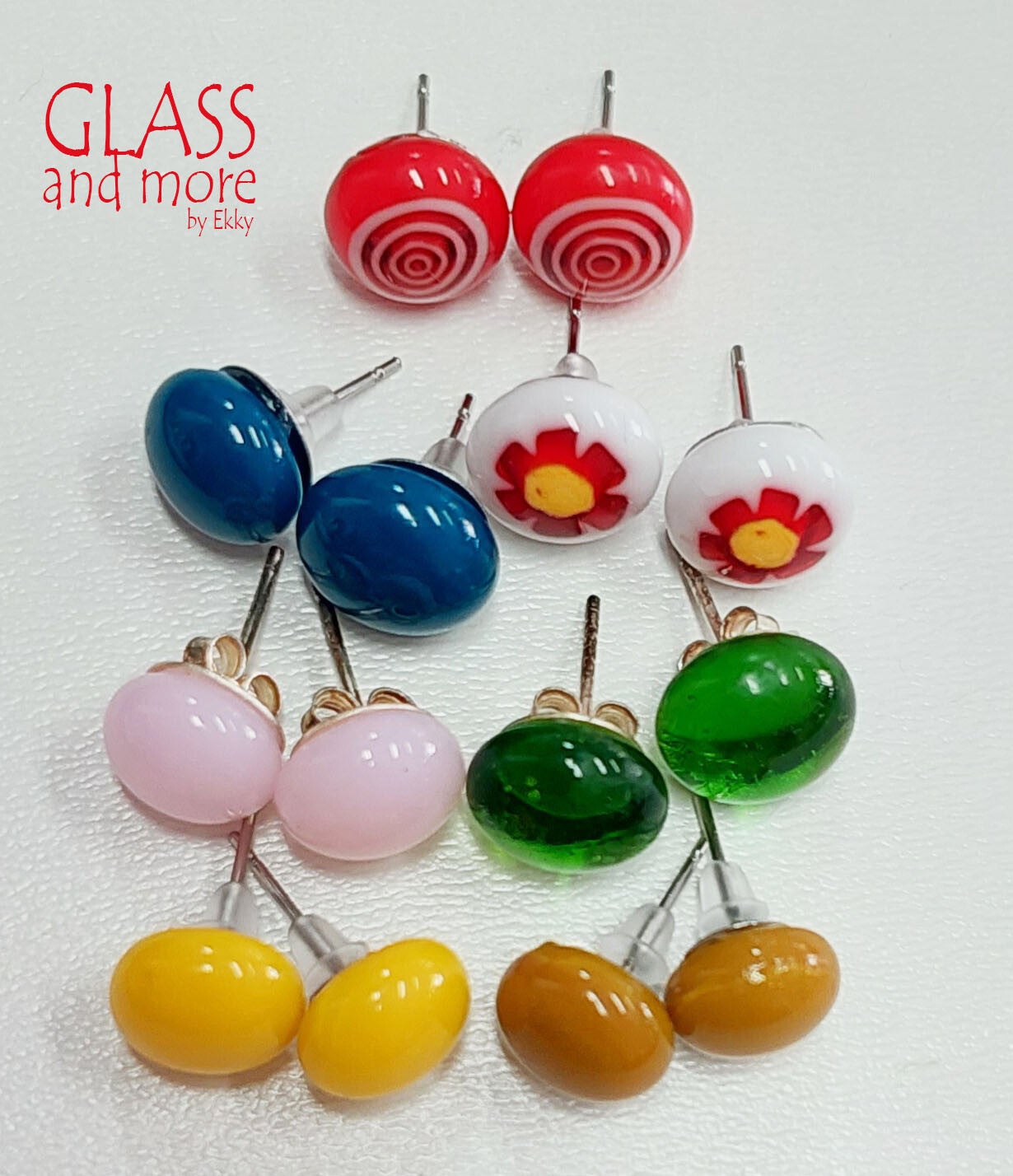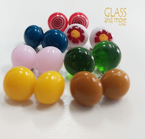 oorbellen van glas, ongeveer 10 mm in diameter.