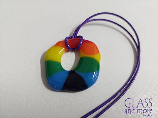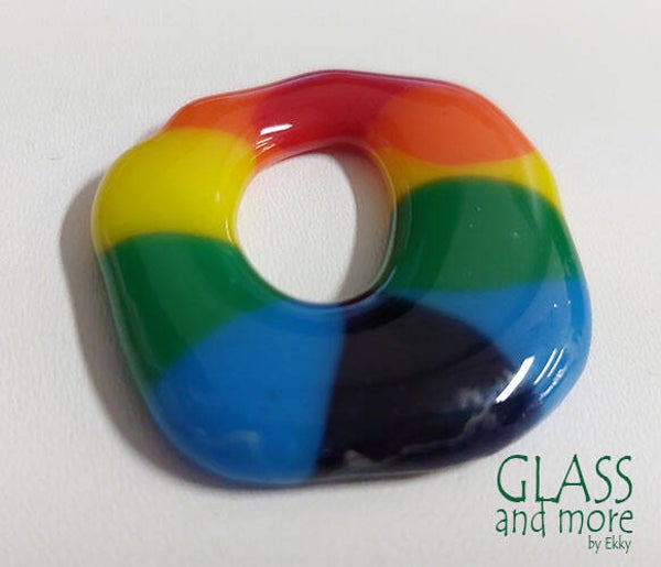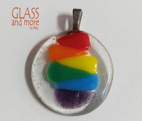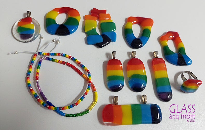 Verschillende regenboogsieraden van glas of kralen.