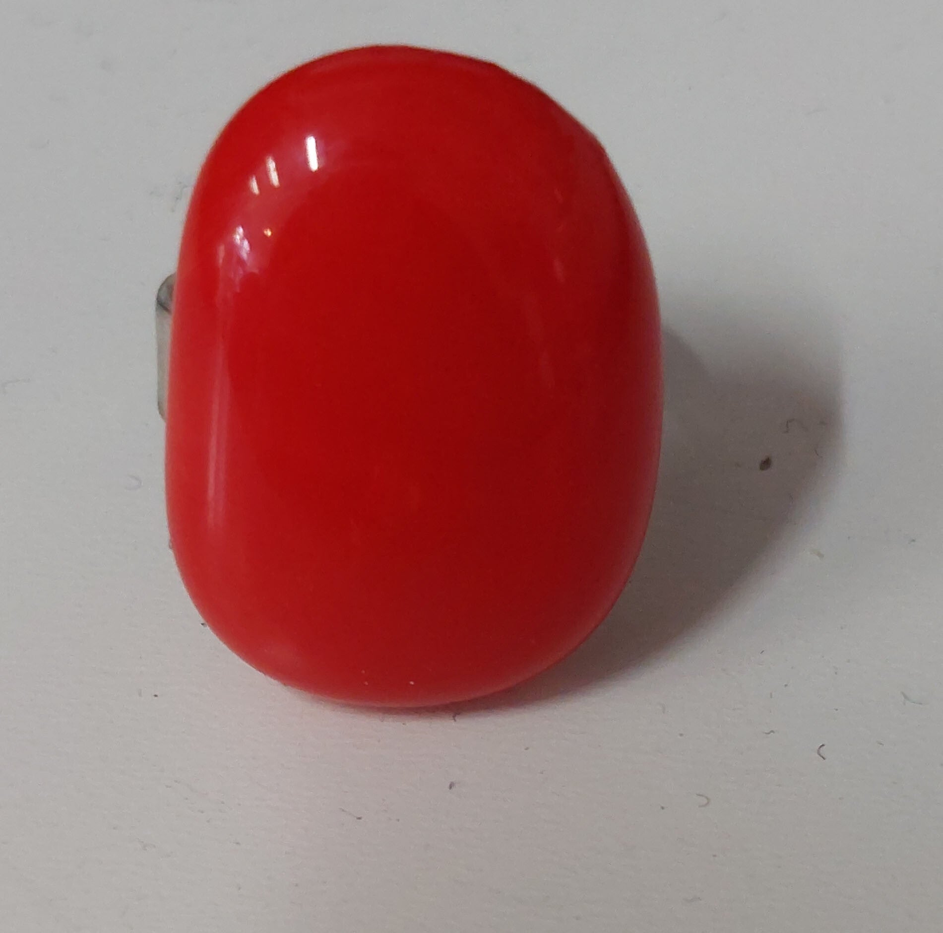 Langwerpige rode glasring.